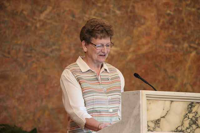 Sister Dawn reflects at the vows ceremony for three Sisters of Providence.