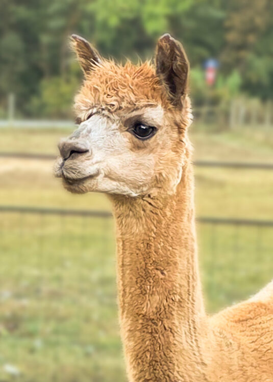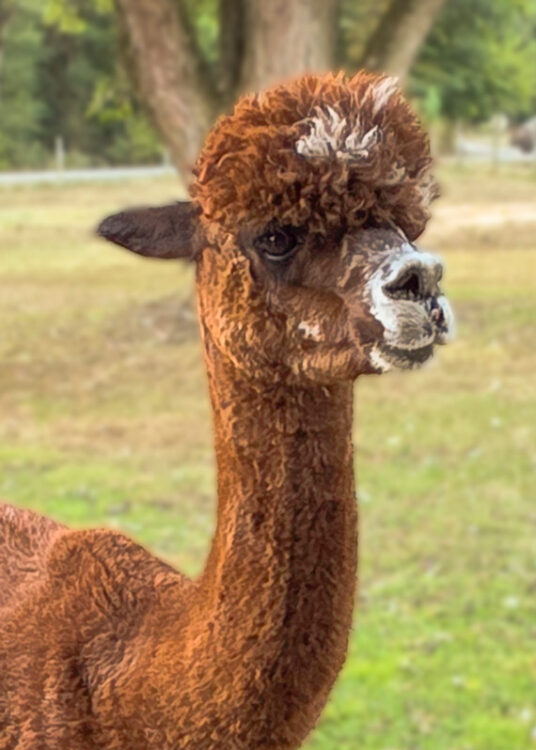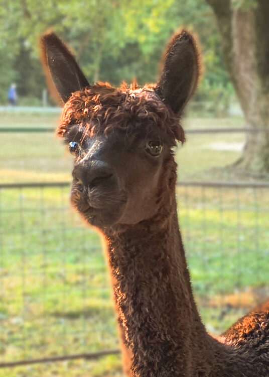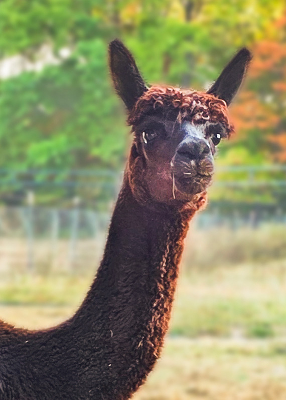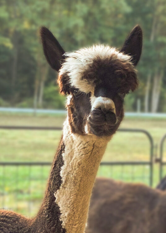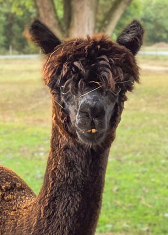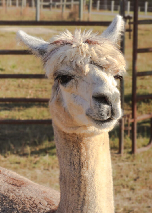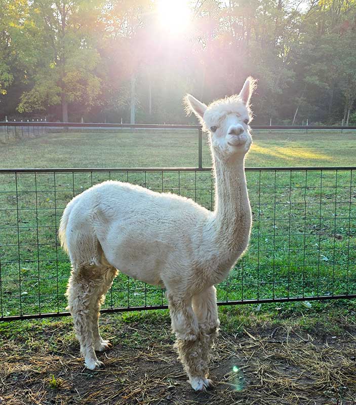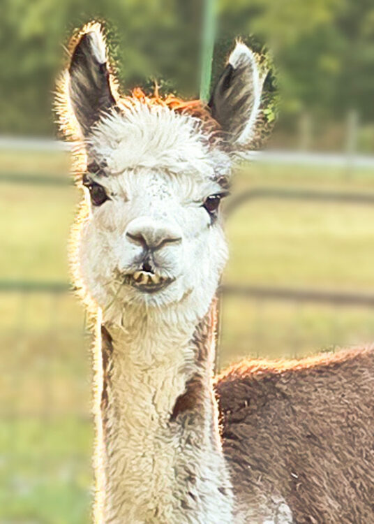 A unique alpaca. Spends a good deal of time chewing on fences. “Howie is going to Howie.”