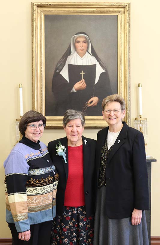 Sisters celebrating 60 years with the Congregation this year included (front, from left) Sister Claire Hanson, Sister Martha Rojo, Sister Kathleen Leonard, Sister Betty Paul and Sister Mary Ann Stewart, photographed with (back, from left) General Superior Sister Dawn Tomaszewski, General Councilors Sister Carole Kimes, Sister Laura Parker, Sister Anne Therese Falkenstein and Vicar/General Treasurer Sister Jeanne Hagelskamp.