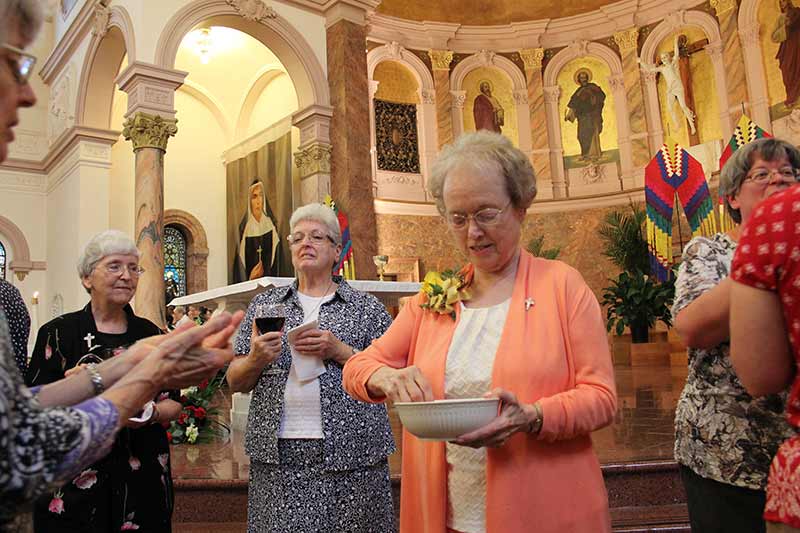 Sisters who celebrated 50-year and 25-year Jubilees recently included (front row, from left) Sister Carole Ann Fedders, Sister Loretta Picucci, Sister Connie Kramer, (second row) General Councilor Sister Mary Beth Klingel, Sister Joan Slobig, Sister Marsha Speth, Sister Rosemary Nudd, (third row) Sister Ann Sullivan, Sister Mary Ryan (25-year Jubilee), Sister Barbara Reder and Sister Mary Mundy. They were joined during the celebration by Sisters of Providence General Councilors (back row) Sister Dawn Tomaszewski, General Superior Sister Denise Wilkinson, Sister Jenny Howard and Sister Lisa Stallings, Vicar.