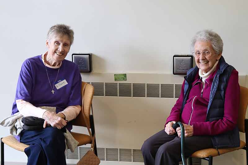 Sister Claire Hanson (left) with Sister Marilyn Baker at the 2025 Foundation Day Morning Prayer.