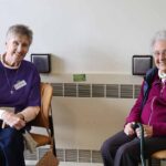 Sister Claire Hanson (left) and Sister Regina Marie McIntyre readying to greet those entering Providence Spirituality & Conference Center.