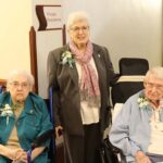 Sister Kathleen Leonard (center) poses with her former teachers Sister Mary Ann Phelan (left) and Sister Dorothy Ellen Wolsiffer. All three celebrated Jubilees in 2025.
