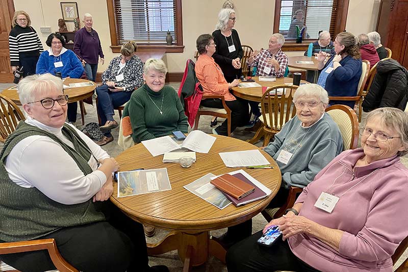 Sisters of Providence who celebrated 75 years with the Congregation include (front, from left) Sister Joyce Brophy, Sister Lucille Nolan and Sister Margaret Heese. They are photographed with the General Council, including (back, from left) Sister Carole Kimes, Sister Laura Parker, General Superior Sister Dawn Tomaszewski, Vicar Sister Jeanne Hagelskamp and Sister Anne Therese Falkenstein