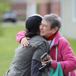 Sister Marilyn Baker (right) hugs a visitor.