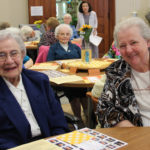 Father Dan Hopcus, a Providence Associate and chaplain for the Sisters of Providence at Saint Mary-of-the-Woods, enjoys his daily visits to sisters and other residents at Providence Health Care. Here, Father Dan visits with Sister Anne Krause (formerly Sister Marie Robert) and Mary Imelda Coulup.