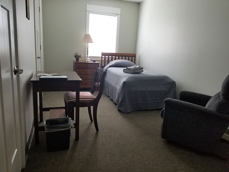 Nine (9) bedrooms, each with a twin bed, private bathroom, desk, recliner, closet, and luggage rack; 2 bedrooms are handicap accessible